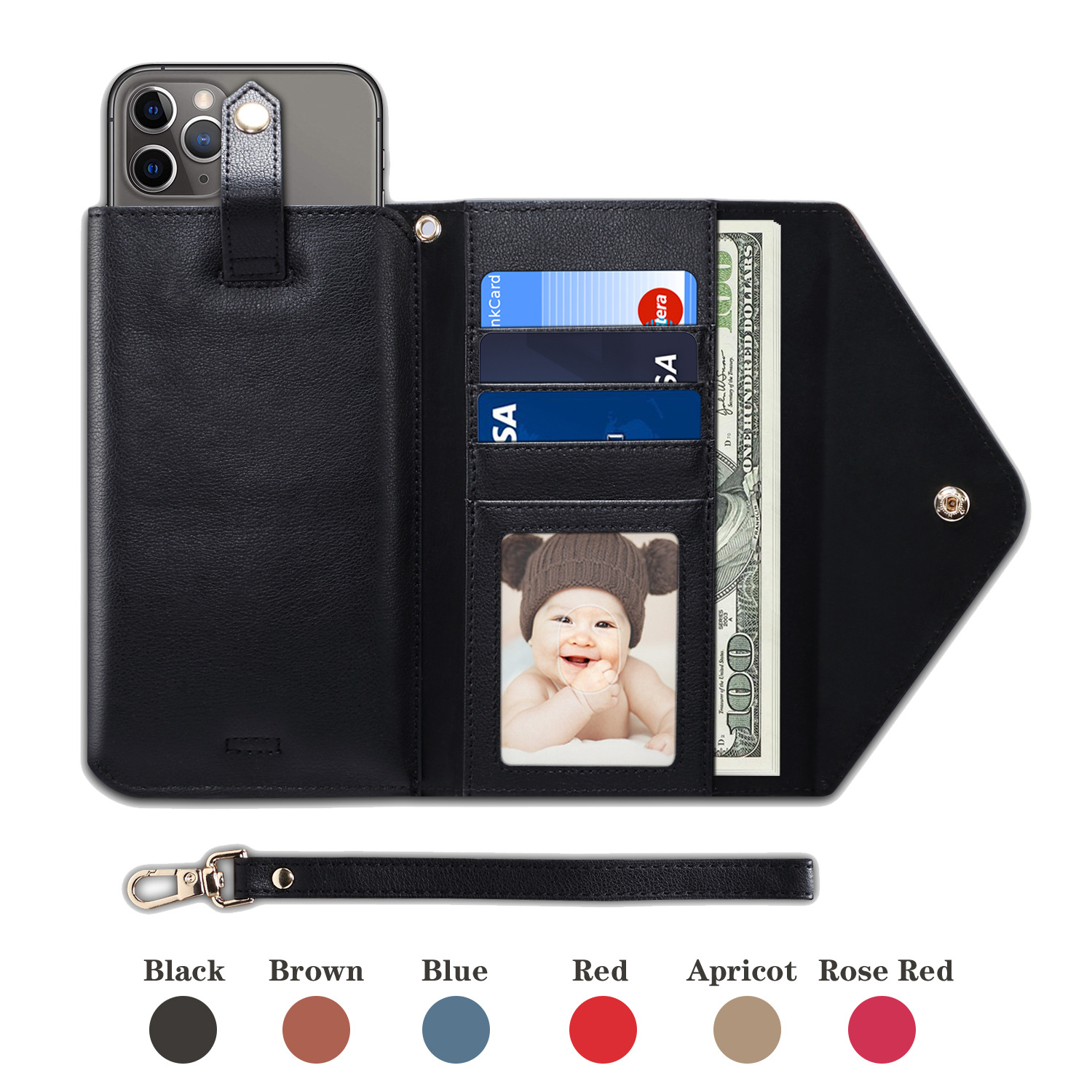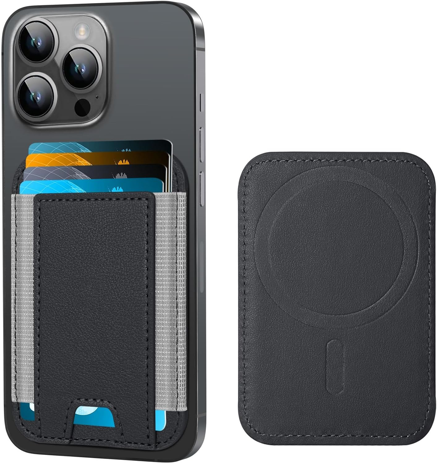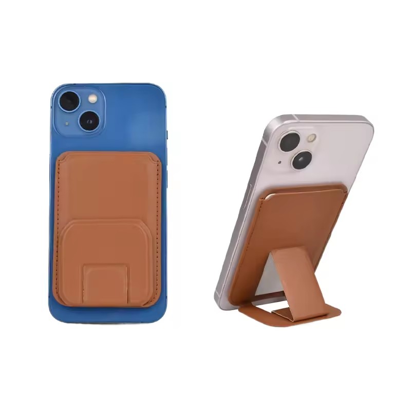 The Leather Wallet with MagSafe function, and the magnetism is strong. It is elastic and it has the anti-lost finger loop design, and it also could be a stand, which is really useful. We have made some upgraded at its edge, the edge is made of plastic, and it looks more smoother, luxury, pretty and it is more durable.